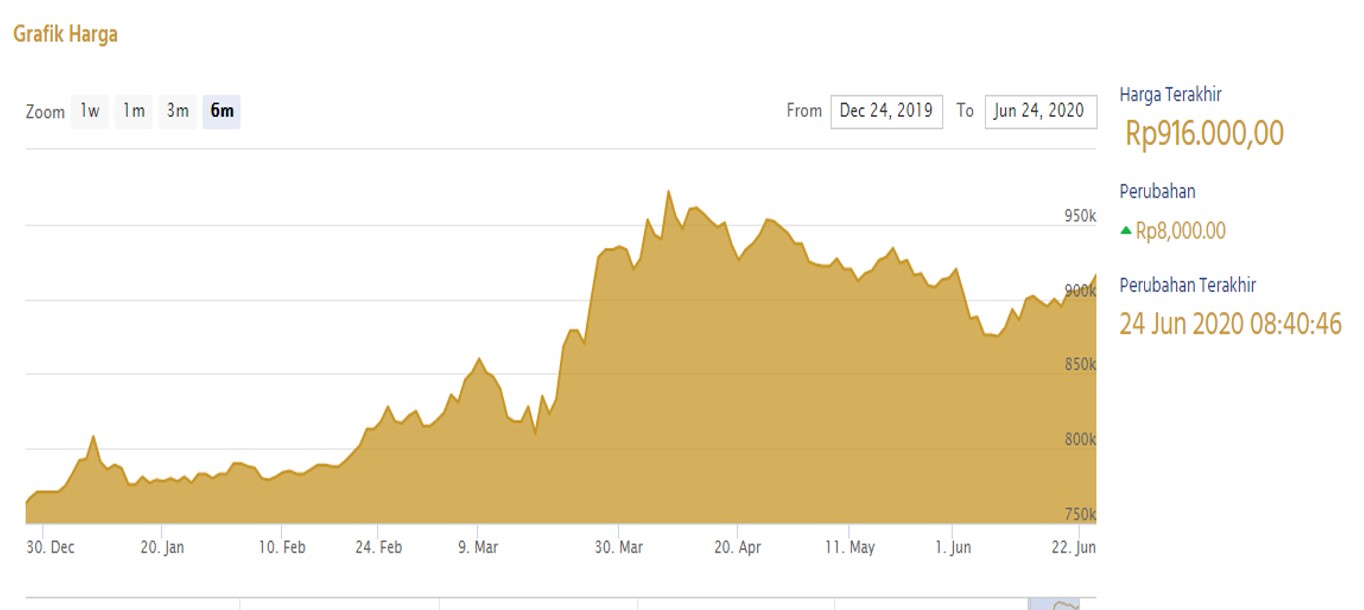 Tabel lengkap HARGA EMAS Antam hari ini, Rabu, 24 JUNI 2020 di butik Logam Mulia, Pulo Gadung