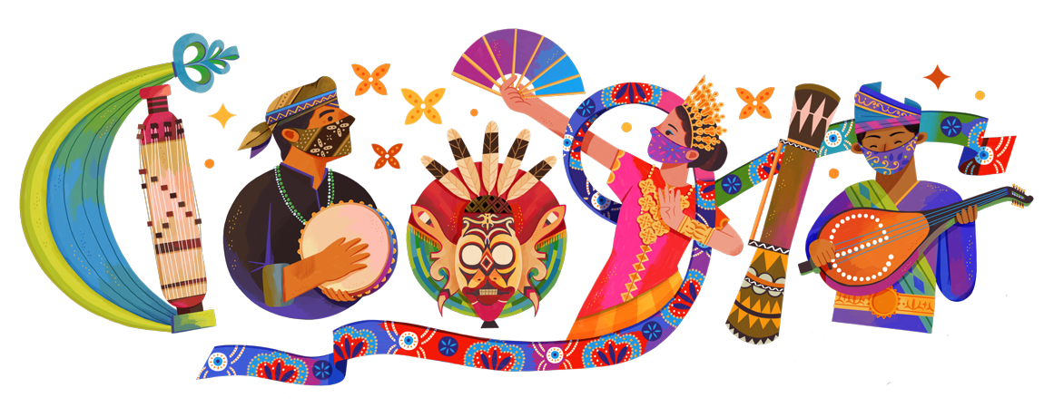 Google Doodle ditampilkan dengan meriah yang mencerminkan multi etnis dan kultur di Indonesia.Â
