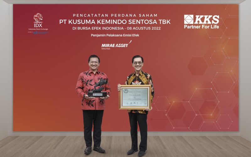 Tempias.com, JAKARTA – IPO PT Kusuma Kemindo Sentosa Tbk (IDX: KKES) resmi tercatat di Bursa Efek Indonesia pada hari ini, Senin, 8 Agustus 2022.