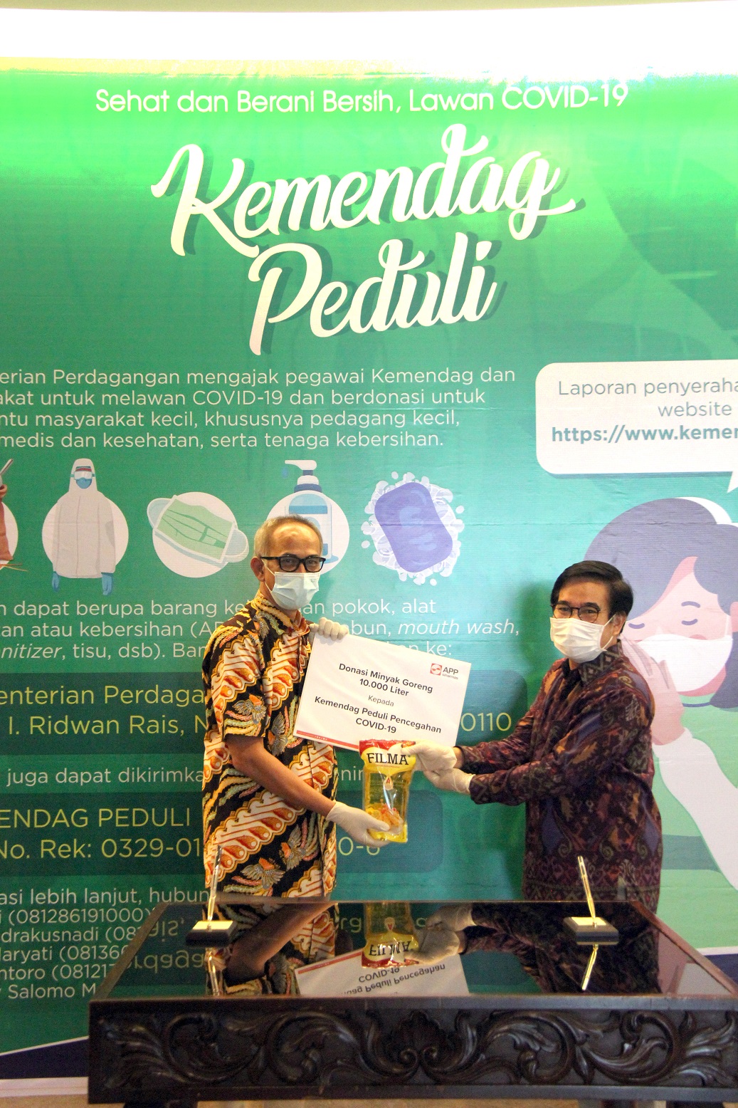 Demi mendukung program Kementerian Perdagangan (Kemendag) Peduli COVID-19, Asia Pulp & Paper (APP) Sinar Mas turut menyumbang 10.000 liter minyak goreng merek Filma dan Kunci Mas untuk masyarakat yang membutuhkan. Melalui Kemendag, minyak goreng tersebut bersama bantuan lainnya akan diserahkan ke Satuan Gugus Tugas (Satgas) COVID-19 di sejumlah provinsi, meliputi DKI Jakarta, Banten, Jawa Barat, Jawa Tengah, DI Yogyakarta, dan Jawa Timur.